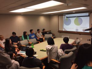 研修の初日、私たちはUCLAに行きました。UCLAはNikkei Student Unionという日系人生徒の団体がある大学です。私たちは、プレゼンテーションをNSUの生徒の前でしました。2グループに分かれ、2つのトピックについてプレゼンテーションをし、アメリカと日本両サイドからの意見交換はとても有意義で価値のあるものでした。